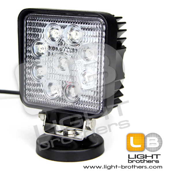 1. ไฟสปอร์ตไลท์ LED Work Lamp หรือ ไฟตัดหมอก LED Work Light แบบเหลี่ยม ขนาด 4 นิ้ว ให้กำลังไฟ 27 Watt (วัตต์) จาก LED 9 ดวง x 3 Watt high intensity Epistar LEDs